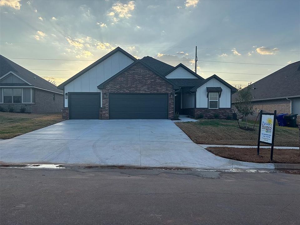 Don’t miss out on this Parade of Homes special with a limited offer of $10K in incentives available until Oct. 5th! This newly built 4-bedroom 2 bath home features an open-concept floorplan with tall ceilings and a gas fireplace in the living room. The kitchen boasts a large island with plenty of seating plus a large dining room space. Custom features include quartz countertops, modern cabinetry with designer colors, modern fixtures and hardware, and stainless steel appliances. The split bedroom plan offers a primary bedroom fully separate from the other bedrooms. The primary bathroom has many luxury features including a convenient passthrough from the primary closet to the laundry room off the mudroom. You won’t want to miss the oversized three car garage for all of your storage needs. Located on a quiet cul-de-sac street conveniently located near the University of Oklahoma, this home offers everything you need! A 10-year home warranty through RWC (Residential Warranty Company) is also included! professional pictures coming soon.