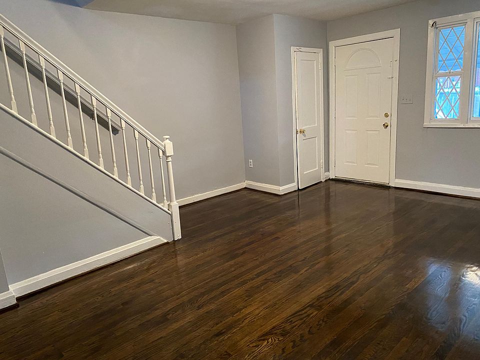 Recently renovated. Townhouse painted with modern colors, refinished hardwood floors on main and upper levels. Second floor has 3 bedrooms and a full bath. Large additional 4th room in basement. Newly added second full bath with ceramic tiles in basement. Kitchen with vinyl plank floors and tiled backsplash. Covered front porch. Rear deck and parking space. Conveniently located close to shopping and grocery stores, I-95 and I-695.