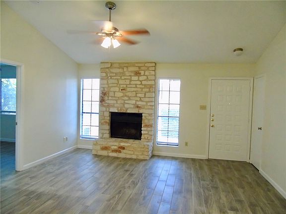 3 bedroom, 2 bath duplex in desirable Wells Branch area. Wood like tile flooring throughout , 2" blinds,5 burner stainless steel gas stove, SS refrigerator stays, fresh paint. Vaulted ceilings, fireplace. Master bedroom away from other 2 bedrooms Walk in closets. Garage/ opener. Screened in patio. Fenced backyard. Solar cells for electric credit ! Area has great amenities and close to park. Near major roadways, employers, schools, shopping, dining, entertainment.