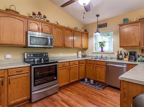 - Appliances: Dishwasher, Disposal, Microwave, Stainless Steel Appliance(s), Range/Oven-Electric
