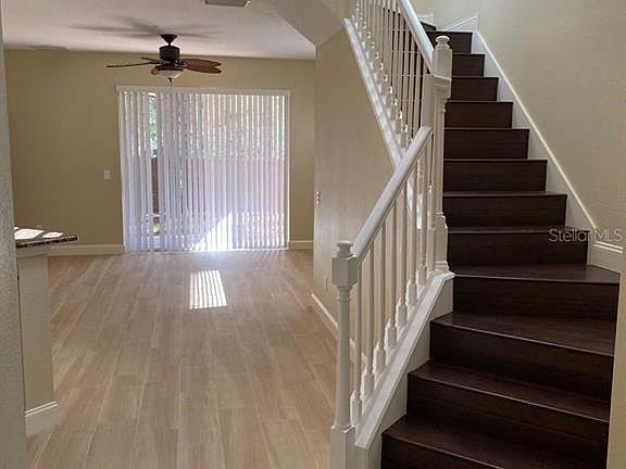 DOWNSTAIRS MASTER SUITE in this 2672 sq.ft townhome. FRESH PAINT THROUGHOUT, NEW PORCELAIN FLOORING DOWNSTAIRS, NEW CARPET UPSTAIRS. Beautiful unit in GREAT CENTRAL LOCATION! GATED COMMUNITY MINUTES TO I-4! Clubhouse & Pool close to unit. Beautiful view of woods beyond BRICK WALLED REAR YARD. Unit features 4 OVERSIZE BEDROOMS, 3 1/2 BATHS