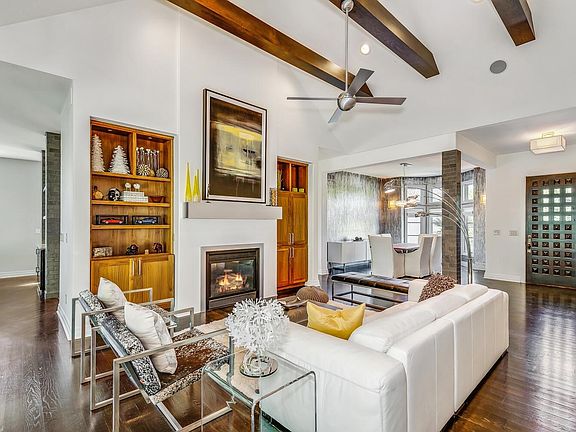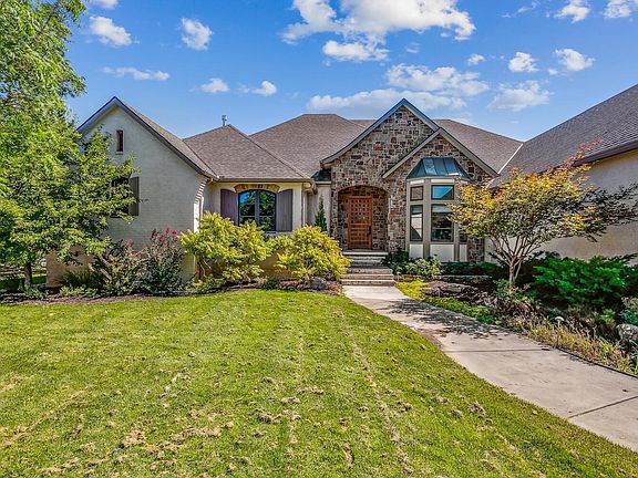Located in the desirable Reed's Cove "The Pointe" neighborhood, this home was custom designed to impress and backs EAST to trees! This modern residence encapsulates unique designs and impressive amenities. The wide-open living room is expertly arranged for both entertaining and day-to-day relaxation with an eye-catching fireplace, built-ins & Pella slider doors that open to the screened porch all overlooking the large backyard, pond & trees. The living room blends seamlessly with the spacious dining room, both with wood floors. The sleek kitchen features custom cabinetry, island with prep sink and eating bar, warming drawer, gas range, double ovens, desk, tons of pantry space, tile floors & an eating space. Adjacent to the kitchen, is a generous family room with a fireplace and hardwood floors. Also, there are 2 large main floor bedrooms, both with walk-in closets and serviced by a Jack and Jill bath with heated floors. The primary suite is appointed with a door to the covered deck & a large ensuite bath with 2 sinks, huge tile shower, heated floors, separate toilet area & a huge walk-in closet with access to the generously proportioned laundry room. There is a wonderful home office/library with many bookshelves & built-ins near the master. A powder bath off the main hall plus a family half bath near the popular drop zone complete the main floor. The walk-out lower level displays the same exceptional quality as the main floor and boasts a large recreational room, game room with tile floors (plumbed for a wet bar), 2 additional bedrooms (both with walk-in closets), 2 full baths, a concrete storm room and ample storage. Outdoors, the tranquil space encompasses the uniqueness of this home with 3 outdoor living areas: (1) a composite deck conveniently located off the kitchen--perfect for grilling and (2) a wonderful screened-in porch, and (3) a large patio with panoramic lake views all backing East. The iron fenced backyard also features a sprinkler system & an irrigation well. Enjoy a nightly stroll through the neighborhood on many of the nearby sidewalks! Just a few doors down, is the neighborhood pool, playground and clubhouse. ANDOVER SCHOOLS!