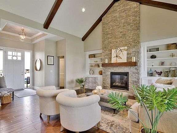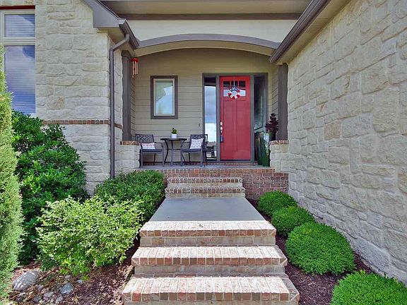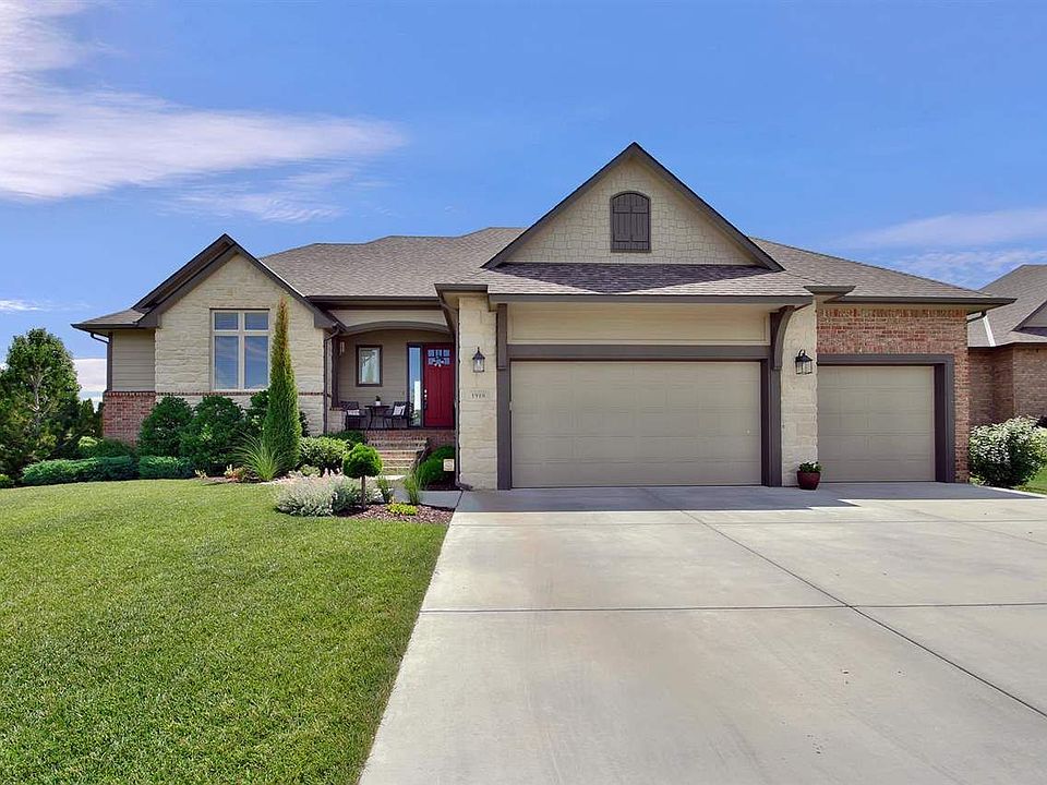 GORGEOUS; this one owner Bruce Fahsholtz built 4 BR, 3-1/2 BA split bedroom ranch shows like a model home! With beautiful curb appeal, this home is located in the coveted Garden Walk neighborhood in the Andover School District with Sedgwick County taxes. The separate foyer leads to the large open living space, beautiful with panoramic windows, vaulted ceilings, wood beams, hardwood flooring, white trim, floor-to-ceiling white built in shelving/cabinets, stacked stone and gas fireplace. The gourmet kitchen is well equipped with granite counter tops, large center island/eating bar, stainless steel appliances- refrigerator stays, gas range, white cabinets, soft close drawers, huge walk-in pantry, appliance garage, over-cabinet and under-cabinet lighting with adjacent dining room space for fun dinner parties or Saturday morning breakfasts. The adjacent back hallway, featuring a built-in bench with hooks and cubbies along with a drop zone counter/desk, leads to the garage door and seperate laundry room that connects to the huge master closet. The lovely master suite invites you to relax with recessed ceilings, soaker tub, separate shower, two separate vanities and private toilet. Two additional bedrooms connected by a jack-n-jill bathroom each with their own sink and vanity and walk in closets and an additional powder bathroom for guests completes the main level. The walk-out basement showcases a large family/rec room with wet bar and gas fireplace. An additional bedroom and full bathroom complete the finished basement. The sellers are finishing the FIFTH bedroom in the basement. There is another full bathroom option still unfinished in the basement. Exterior features include professional landscaping, private covered deck, private back yard and sprinkler system. This immaculate home has everything you are looking for in style and function. Call today to set up your private showing.
