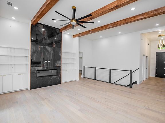 Contemporary stunner in Grammercy Park minutes from Walmart ISD, Memorial Park, & downtown. With 4 bedrooms, 4 full baths, 2 living rooms, office, media room, & game room this home has it all! The open kitchen has a huge island, quartz countertops, & Frigidaire Gallery appliances. The main floor living is centered around a fireplace w/ built-ins & showcases a fantastic wooded view out of the picture frame windows. The primary suite is designed for relaxation w/ built-in bedside reading lights, soaking tub, & sun-lit walk-in shower w/ massage bar. The lower level is designed for fun, beauty, & function w/ a full second living room, theater room with surround sound wiring & 4K painted screen with frame, & separate huge game room, more picture windows, wood floors, & 8in baseboards! The living is easy throughout this beautiful home with smart thermostats, the latest USB Type-C outlets in the living & primary suite, & smart Wi-Fi switches in all rooms! SELLER WILL PAY $10,000 TOWARDS BUYER'S CLOSING COSTS & PRE-PAIDS!