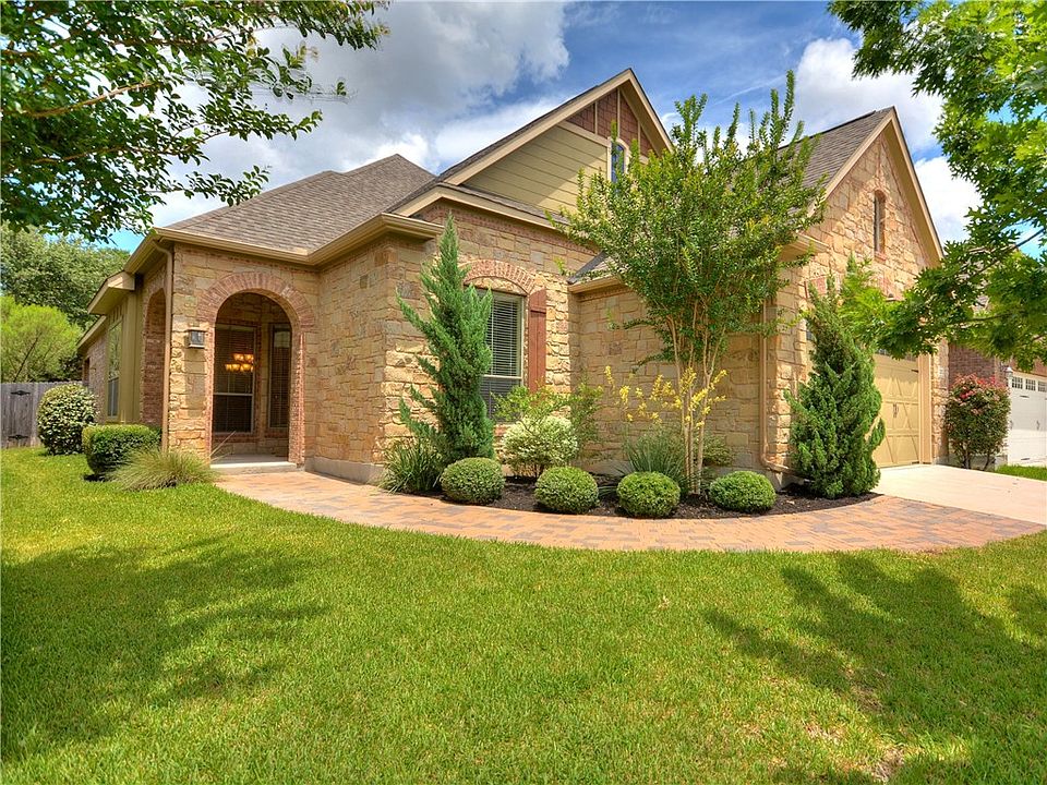 Beautiful 1-Story, 3 Bedroom, 2 Bathroom, Sitterle Home, built in 2010 & nestled into Buttercup Creek, one of the most desirable neighborhoods in Cedar Park. The home features Brick/Stone Facings with 10' Ceilings, 8' Doors, 18" Ceramic Tile throughout with Carpet in Rooms, Granite Counters, Stainless Built-In Appliances, Switch Operated Gas Fireplace and an Extended Patio situated under an Oak Tree Canopy. All within Leander ISD and a short walk to Westside Elementary!