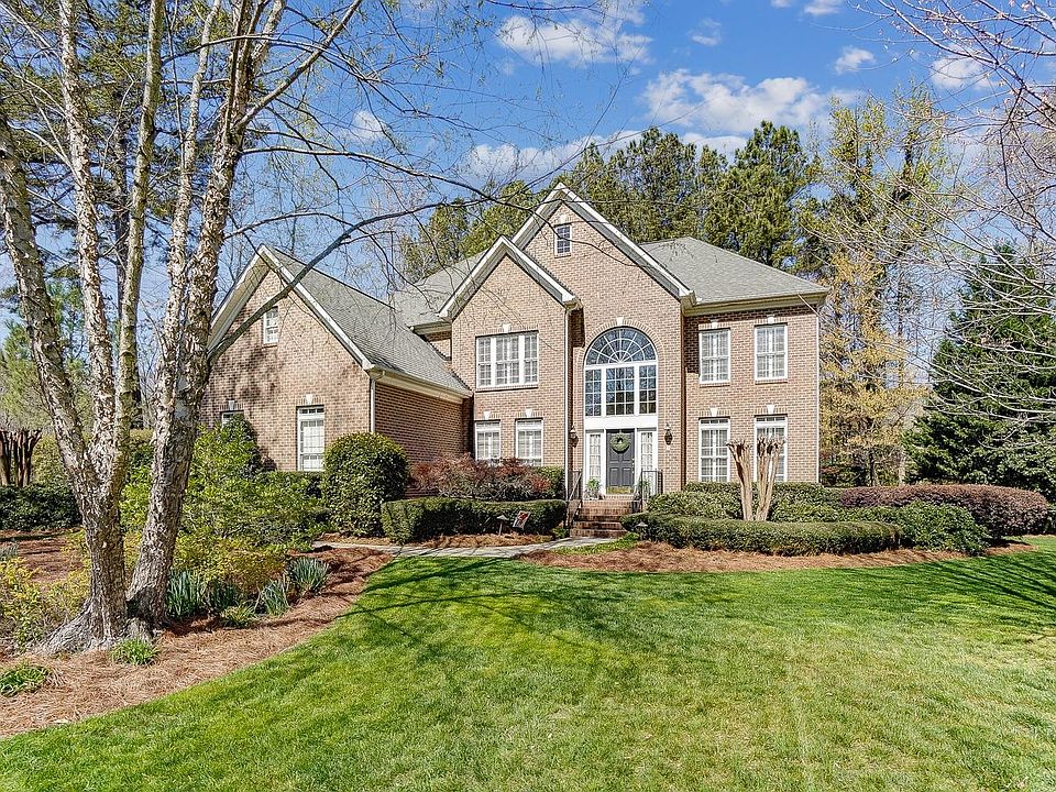 Welcome to this stately home, just seconds to Lake Wylie, that boasts a timeless design, situated in a serene neighborhood. This luxurious property features 5 spacious bedrooms, 4 full baths, and 2 inviting sunrooms. As you enter the open foyer, you will fall in love with the beautiful hardwood floors, high ceilings, and open staircase that leads to the upstairs. The main level includes a living room with a cozy fireplace, perfect for entertaining guests or relaxing. The gourmet kitchen is a chef's dream, with black SS oven/fridge, and a large center island. The dining room is perfect for hosting formal dinners or casual gatherings. The upstairs features 5 generously sized bedrooms. The luxurious primary suite boasts a private sunroom that overlooks the serene backyard and a massive closet. The two sunrooms offer additional living space, workout room, or cozy reading nook. The lush backyard is a private oasis with a beautiful patio area, perfect for outdoor entertaining or relaxation.
