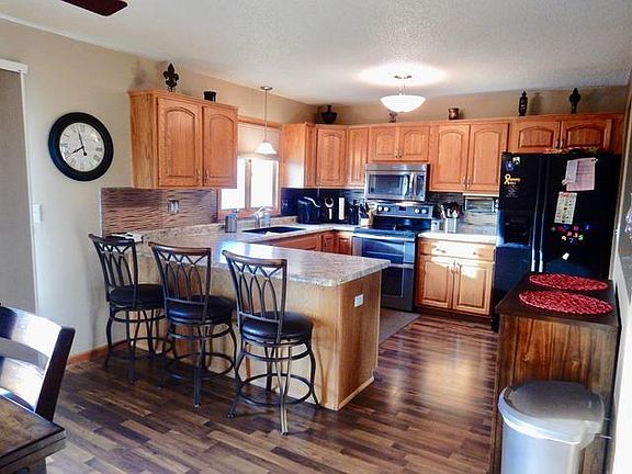 Lovely 3 bedroom/2 bath home in South Bismarck. This home has many updates! New flooring in kitchen, bath and entry way. New kitchen countertops. Stainless steel double oven. New light fixtures and hardware throughout. Main living area is nice size with cut-out open to the kitchen. Dining area off of kitchen that leads to back deck. Low-maintenance deck is nice size with stairs leading to enjoy the backyard. 2 bedrooms on main floor with jack & jill bathroom that has been updated. Walk-in closets in the bedrooms. Main floor laundry. Basement level is bright with daylight windows. Large living area with gas fireplace. 1 bedroom in basement with large walk-in closet next to room. Storage under stairway. 2 stall attached heated garage that is finished and painted with workbench & cabinets. Additional 16x12 shed next to garage AND camper pad! Large Yard is to be desired with beautiful landscaping and perennials! Newer curbed edging installed. Corner garden spot in backyard.