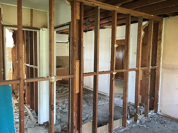 brick ranch ready for design and repair. Make it what you want. No plumbing, electrical, etc. left. Srtipped to the stud walls.