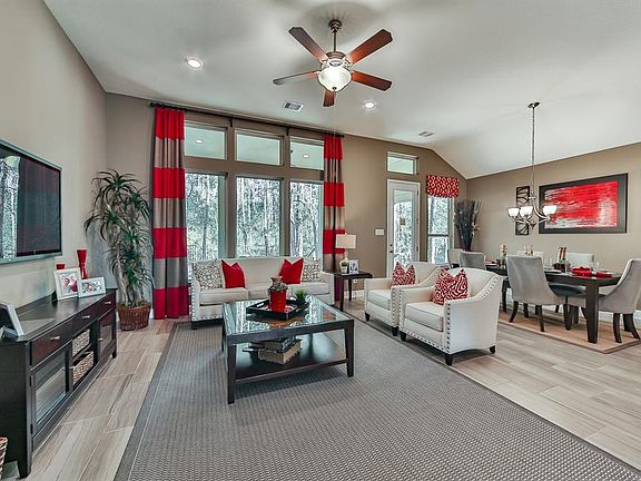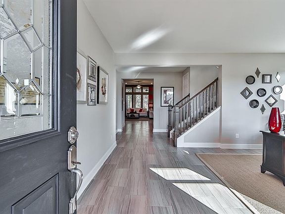 This amazing KB former model features a brick veneer, high ceilings, tile flooring, and an open living room. The gourmet island kitchen comes equipped with granite countertops, 42â cabinets, and stainless steel appliances. Unwind in the spa-like master suite, complete with bay windows, dual vanities, a 42â Sterling Ensemble tub, and separate shower. Other distinguishing features include Sherwin-Williams Worldly Gray paint, a fully equipped security system, full house gutters, and an extended covered patio.