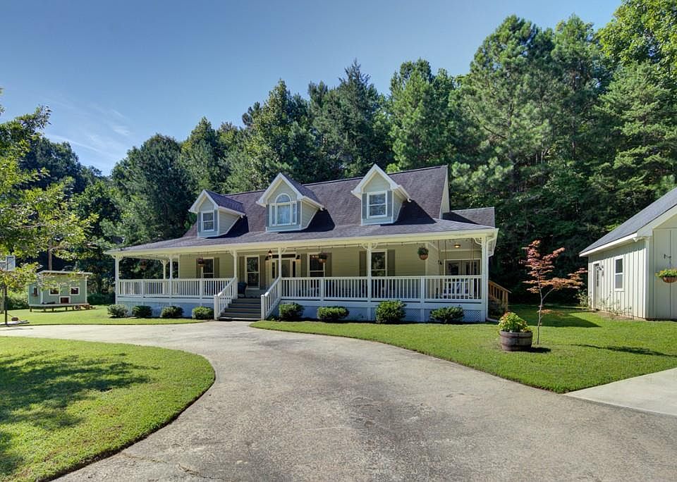 Modern farmhouse with all the southern charm!! 4 bedrooms, 4 bathrooms. Kitchen features a farm sink, granite countertops & opens up to the keeping room with a stunning shiplap wall, fireplace & built-ins. Fabulous master bedroom with double vanity sink in the master bath. Wrap around porch with oversized swing is perfect for enjoying Georgia nights. Fall in love with the secret play room in one of the bedrooms & a secret room for storage under the stairs. 2 car detached garage/workshop is a must see. Roundabout driveway. Minutes to Lake Lanier & Toto Creek Park.