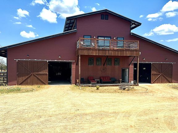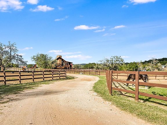 AUCTION BIDDING OPEN: Bidding ends July 18th. Previously Listed $3.35M. Current High Bid $1.8M. Showings Saturday & Sunday 1-4pm, and Daily By Appt. Located in beautiful Texas hill country, this thoughtfully designed equestrian boarding and training facility has all the space needed for boarding and training horses and riders. Known as Querencia Stables, the property sits on 15+ acres with multiple buildings, including barns, holding pens, arenas, sheds, and a luxurious residential cabin. This expansive location includes a primary 20-stall barn with feed room, tack room, office, two upper level apartments, and a guest lounge with shiplap walls, a full bath, and coffee bar. The secondary barn has six stalls, second floor storage, and custom log construction. The large riding arena is fenced in the classic outdoor arena style. The smaller arena is a covered space. Included are 11 paddocks and a one-acre jump field. The two-story log cabin boasts exposed wood beams, stone chimney and fire-place, expansive windows and a cozy kitchen.