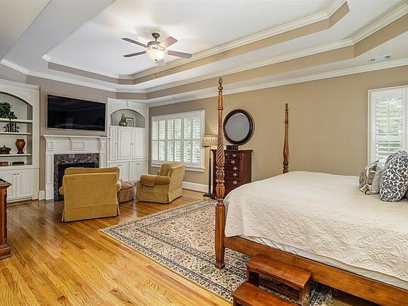 Exceptional home in Pope High on private cul de sac lot. Two story foyer & great rm open to kitchen w/island, serving bar, eating area & sitting rm. Dining rm w/butler's pantry & wine cooler. Main level powder rm & bedrm w/full bath. Four spacious bedrms/four baths & laundry up, including master suite w/hardwood floors, fireplace & luxurious bath. Terrace level w/living & media areas, bar w/wine cooler, ice maker & refrigerator, stone wine cellar, guest suite w/private entrance. Outdoor living w/pool, waterfall spa, fireplace, play area & landscaping. Three car garage.