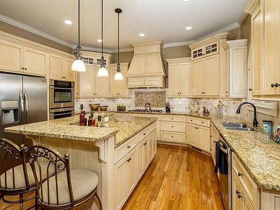 - Kitchen Features: Breakfast Bar, Eat-in Kitchen, Pantry, Stone Counters, Kitchen Island, Keeping Room, Cabinets White