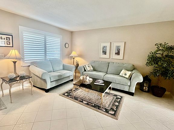 Sit outside and greet the neighbors on your back terrace with palm trees and hibiscus plants in sight and enjoy the Gulf Stream breezes.This house is positioned within a 3 minute walk to one of three pools this association offers. Other amenities include free18 hole par 3 golf, sauna, spa, bocce ball courts, fitness center. Located in the heart of Boynton Beach near shopping, dining and beaches.
