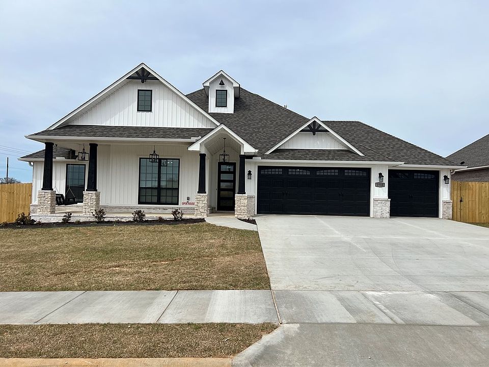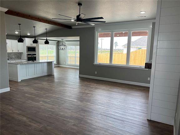 Beautiful new construction home, 3 bdrm, 2 bath, 3 car garage, all LVP hard covered floors in the whole house, cathedral back patio, big front porch with swing, fenced yard, blinds, big patio, plus lots more