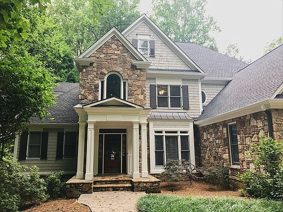 UPDATE- New dimensional shingle roof, new exterior painting and new interior painting just completed. New upstairs carpet just installed. CUSTOM designed and built home to enhance privacy of the large lot. House is being sold by original owners (buyer agent commission protected). This hidden gem is tucked away on a private lot on a cul-de-sac with views of large fenced in back yard. This house is located just minutes from Avalon, downtown Alpharetta, the Big Creek Greenway and Webb Bridge Park, and highway 400. It is located in Park Glen subdivision that has a clubhouse, pool and 2 tennis courts. 1. First floor - 2,145 SF - One bedroom and one full bath. Office with fireplace. Great room with fireplace, built in book case, and large windows. Large banquet size dining room. Renovated kitchen and walk in pantry. Sub Zero built in refrigerator, 30” Thermador double oven, built in microwave, 5 burner gas cooktop, dishwasher, and FarmHouse double deep bowl sink. Breakfast room with vaulted ceiling. Half bath with cabinet. Mud room with built in lockers and desk. Foyer and back staircase access to upstairs. 2 car garage with built in locker cabinets. 2. Upstairs - 1,935 SF - Open Loft area. Walk in laundry room, large master bed room with 2 walk in closets and sitting area. Master bathroom with Jacuzzi tub and shower and separate vanities. One large bedroom over garage with walk in closet, and one bedroom with closet. Bedrooms have Jack and Jill bathroom with separate sinks. 3. Basement - 1,540 SF - One bedroom and one full bath. Recreation room. Media room and office. Kitchen area roughed in for plumbing. Unfinished storage 605 SF. 4. Screen porch 190 SF with tile floor. Side Wood deck with stairs to backyard. Rear deck with gas line to grille 275 SF. 5. New 30-year dimensional shingle roof. New exterior painting including decks and screen porch. 6. 2 hot water heaters. 7. Wide driveway with plenty of parking. Rear yard fenced in. Private setting with Fire pit. Backyard consists of grass and wooded areas. Plenty of space to add pool or outdoor entertainment area.