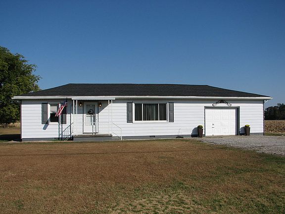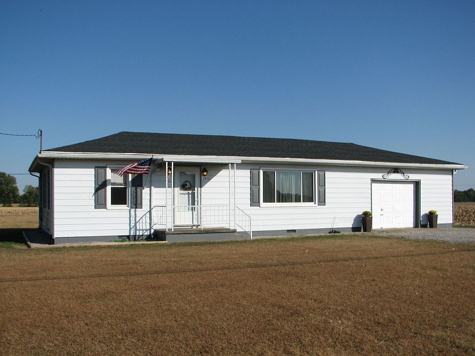 Cozy one story ranch AVAILABLE on HALF ACRE completely UPDATED with DECK, large area of ROCK parking on PAVED county maintained road & is ready for its new owners. COVERED FRONT ENTRY greets you into a spacious living room open to kitchen with eat-in breakfast area+features easy access to deck off back of home & attached garage with exterior back door to take in FIELDS OF PRIVACY**Interior of home shows beautifully with UPDATED KITCHEN & NEWLY REMODELED BATH+inside separate laundry room includes washer & dryer**OPEN KITCHEN features white on white appliances including microwave & refrigerator, oak cabinetry & laminate flooring**LARGE BATH features tub/shower combination with recent CUSTOM TILE SURROUND, VANITY, TOILET, LIGHTING, FIXTURES, VINYL PLANK FLOORING & MORE**Water filtration system**RECENT IMPROVEMENTS IN LAST 5 YEARS include additional attic insulation, dimensional shingle roof, replacement windows except for garage, hot water heater, electric heat pump, a/c, breaker service, complete remodeled bath, complete crawl space reworked with remediation including treatment, 6 mil plastic barrier, sump pump installed & plumbed away from home, crawl door, frame & well installed with transferable warranty to buyer at closing, front storm door & more! Home is on well & septic, so NO WATER BILL! Home is not in a flood plain. Seller says pumped septic tank about 2 years ago & super energy efficient home. A MUST SEE! WON'T Last Long!