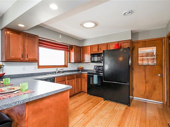 Brick faced home, with beautiful 45 x 5 ft front porch. 3 Seasons room off of the garage & garden shed in the back yard. Home has 3 bedrooms, 2 baths, with possible fourth bedroom in basement, egress window already in place and a HUGE FLOORED ATTIC WITH FULL STAIRCASE! Newly installed whole house ventilation system too! Fully fenced back yard. Newer kitchen and appliances. Wonderful neighbors on all sides!!