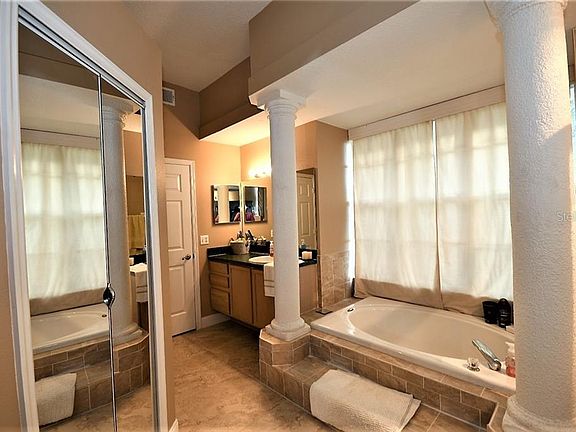 Updated 5 bed 3.5 located in the serene and highly sought-after neighborhood of Saddlebrook, As you enter the home you will see a beautiful curved staircase with built-in inserts surrounding it. The two-floor elevation makes this home unique. A spacious combination kitchen and family room make this the ideal home for entertaining, the kitchen features a center island, wooden cabinets, stainless steel refrigerator, eat-in breakfast area and much more. You will also find tons of natural lighting, large windows, and neutral paint welcome you into the home! New roof in 2011 and the AC is 2yrs old. The master bedroom is a wonderful size and the upstairs suite not too far behind it when it comes to elegance. Columns on both sides of the deep tub, separate walk-in shower, 2 separated vanities, and a jacuzzi tub. HUGE walk-in closet. Outside you will a large covered lanai with paver flooring through. Saddlebrook community also offers a nice playground, community pool, and clubhouse. As you can see, this home is ready for you to add your finishing touches. Location is very convenient to shopping, hospitals, and dining. Top-rated schools, Thornebrooke, Gotha and Olympia! Call TODAY to preview this beauty before its gone!