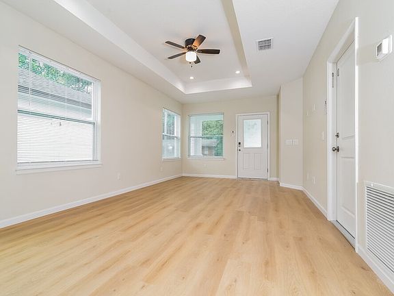 Please note, our homes are available on a first-come, first-serve basis and are not reserved until the lease is signed by all applicants and security deposits are collected. This home features Progress Smart Home - Progress Residential's smart home app, which allows you to control the home securely from any of your devices. Apply to lease this home by December 31, 2024 and receive $1000 off your first full month's rent. Want to tour on your own? Click the "Self Tour" button on this home's RentProgress. This charming three-bedroom, two-bathroom rental home in Eustis, Florida features an attached garage, a lovely front porch where you can welcome guests, and a fenced-in backyard. The open floor plan includes a wonderful living room that is bright and cheerful with multiple windows and a ceiling fan for comfort. The modern kitchen is the perfect space for preparing meals with stainless steel appliances and elegant pendant lights. The white cabinetry provides plenty of storage space. Enjoy meals in the dining room under the flush-mounted ceiling light that you'll find in front of an oversized window. You'll look forward to spending peaceful nights in the main bedroom with its substantial walk-in closet and attached bathroom. Schedule a tour today.