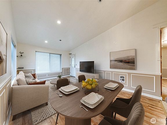 Easy living in Everett in this 2 bed, 1.75 bath top floor, end unit condo in Cedar West. Vaulted ceilings and private balcony combine to create an open, light filled space with a thoughtful layout while the units boasts the rare bonus of an individual garage. Updating throughout including kitchen with stylish backsplash & en-suite primary bath with beautiful tile shower enclosure & double sink! Access private deck from primary bedroom & living room. Gated community at end of private lane with secure entry & HOA dues that include water sewer and garbage. Cat-friendly and below rental cap—perfect for homeowners or investors! Close to Boeing, Fluke, Paine Field, shopping, dining, freeways, transit, Walter E. Hall Park, and everyday amenities.