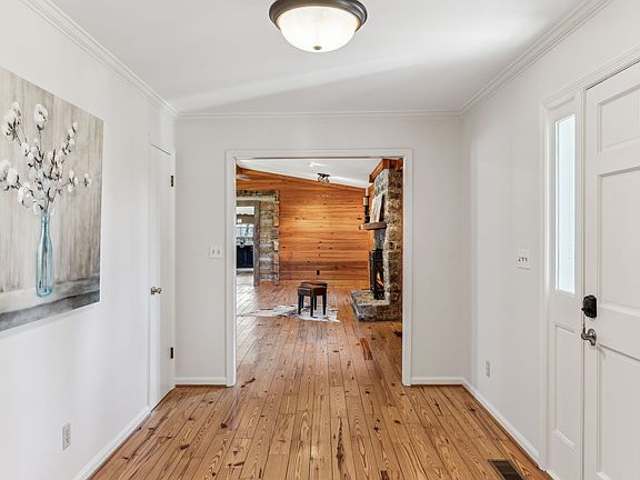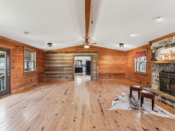 This is a special property with a ranch style home on 5 acres, detached garage with 867sf (not included in sq. footage measurement) of finished space which has been used as a hobby studio plus a separate area for an office (this area is air-conditioned but not heated). The country kitchen was built of vintage reclaimed materials from former log homes. Wide plank Pine flooring is located in the Kitchen/Eat-in, Family Room and Front Entry areas. Wood burning fireplace. Screened back porch. New roof in 2024. Generac Generator. Two water heaters. Water softener. Kitchen Refrigerator, Freezer and Washer conveys. Internet is UNITED.
