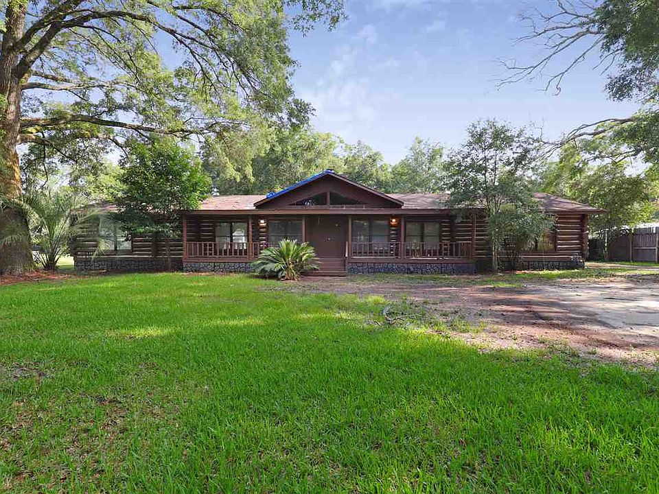 Rustic log cabin in the Gulf Shores city limits with deeded water access for Taylors Riverview subdivision. This home sits on close to an acre and includes a barn, workshop, greenhouse and three car garage. So much outdoor space! The layout of home has lots of space that includes a large open living room with a cozy fireplace, 4 bedrooms with 2 1/2 baths, and a bonus room! The master bath is huge with a garden tub & separate shower. Located just minutes from the beaches & shopping, yet off the beaten path! Peaceful and quiet country living is waiting for you!
