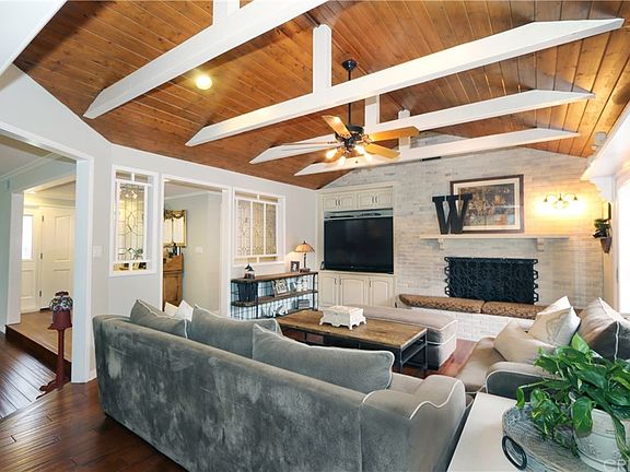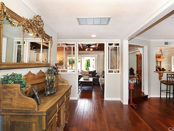 WOW! This Single story corner lot has exceptional curb appeal and is meticulously maintained and landscaped. As you walk through the front door you'll notice smooth textured ceilings, crown moldings, recessed lighting, fresh paint and a cozy fireplace. The home features a spacious living room, warm inviting family room, formal dining room and a big bright kitchen with updated natural quartz countertops, custom cabinetry and stainless-steel appliances. Master suite features an updated master bath with walk in closet, marble countertops, a stunning walk-in shower with dual shower heads and waterfall soaker tub. Modern neutral carpet in the four bedrooms and hardwood floors through the rest of the living areas. Indoor laundry room includes a guest bath conveniently located for pool access. Backyard is an oasis with incredible "California room" with fireplace, built in television, updated saltwater pool, with pebble tech finish and flagstone coping, mature fruit trees, gazebo with bougainvillea, large grass area. This is the perfect home for entertaining.