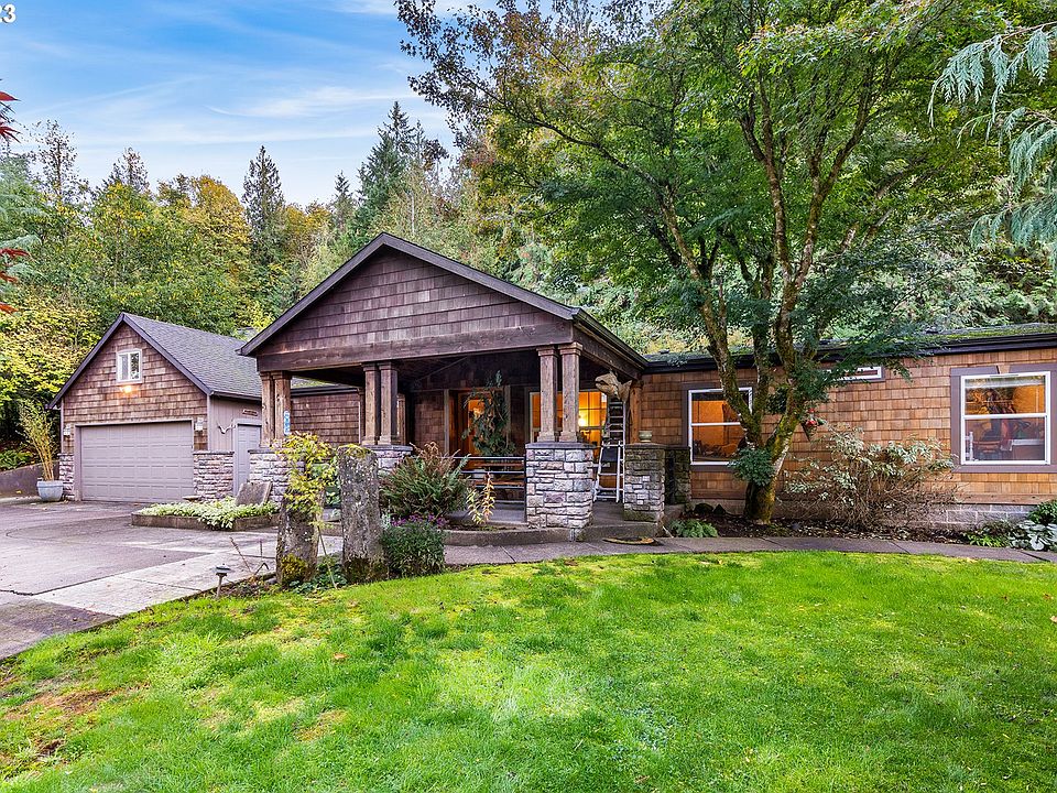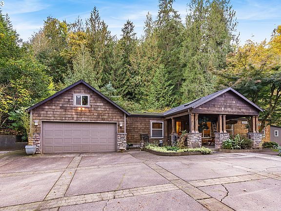 Private and secluded living with all the benefits of a one-level updated home on this large 1.25 acre lot! Even though it feels like you are living on your own country oasis, just minutes to the amenities of Oregon City. Visitors are greeted with a stunning covered front porch, perfect for entertaining and enjoying the view of the trees. Light and bright kitchen overlooks cozy family room. Primary bedroom separated from other bedrooms with walk-in shower and easy access to laundry room. Second bath conveniently located in between 2nd and 3rd bedrooms. In addition to the amazing front porch, head out to the back patio and enjoy lush plantings and a custom outdoor firepit. Walk down to Abernethy Creek. Spacious 2-car attached garage, plenty of space for RV parking. Definitely a must see!