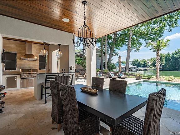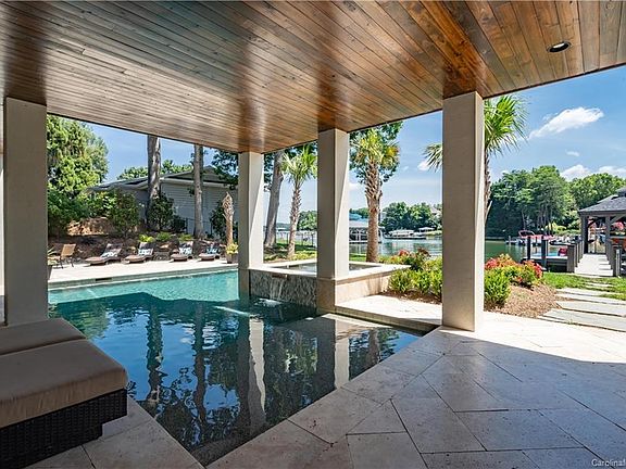 2017 Homebuilders "Best of the Lake" waterfront custom home! Built by award winning Southern Cottage Corp. West Indies resort-style architecture positioned on Lake Norman features 2 stories w/walkout lake level. Pool, spa, outdoor shower, kitchen, fireplace, outdoor dining. Chef's kitchen includes vast center island w/ SS farm sink, marble counters, Thermador appliances w/48 dual-fuel range, paneled built-in fridge, wine refrigerator, obscure walk-in pantry w/custom shelving. Casual dining /built-in banquette over looking lake. Livingroom features shiplap ceilings, cedar beam details, 8'x16' quad bi-parting slider door(motorized screened) porch, herringbone brick floor. Owners suite entered by library gallery, custom shelving, grass cloth wallpaper and total privacy. Ensuite bath natural stone tile shower, dual head /hand held & rain shower, custom closets. Lake level features guestroom, built-in bunks,bar, theatre room, storage, backup generator. Extraordinary upgrades throughout!