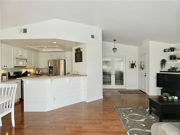 LOW HOA! Gorgeous Single Family Attached Home in the Hills of Portola. Light, bright, airy, open floor plan w/ cathedral ceilings. You will think Joanna Gaines lives here! Custom EVERYTHING. Fresh paint, custom shiplap under the bar, kitchen has white subway tile back splash, recessed lights, quiet Bosh dishwasher, Samsung refrigerator, LG gas double oven range, convection for baking, custom fixtures & Closet World custom cabinets in pantry & garage. Wide open floorplan & expansive back/side yards are fabulous for entertaining w/ great flow. Front bedroom has pretty French doors off LR, another sunny bedroom is around the corner & fabulous Master down the hallway w/ large Master Bath, his & her closets, Casablanca ceiling fan & quaint private patio. Sizable 2-car garage w/ lots of storage, laundry hookups & access through patio. Custom built long court yard w/ iron gate, perfect for child play. There is a Ring doorbell, w/ Ring Camera at gate & backyard. BONUS: All windows are dual paned, specialty slider & Phantom retractable screen. Custom exterior paint w/ heat reflective Cool Wall Systems - LIFETIME paint coating (Transferable). Decorative insulated rollup garage door w/ Wi-Fi capability & Amana HVAC w/ Wi-Fi capability. Clay tile roof, rain gutters & automatic sprinklers. Quiet, safe, upscale neighborhood, close to hiking/biking trails, parks & award winning PH Elementary walking distance. NO Mello Roos Resort style community pool. Feels like a SFR, only 1 shared wall.