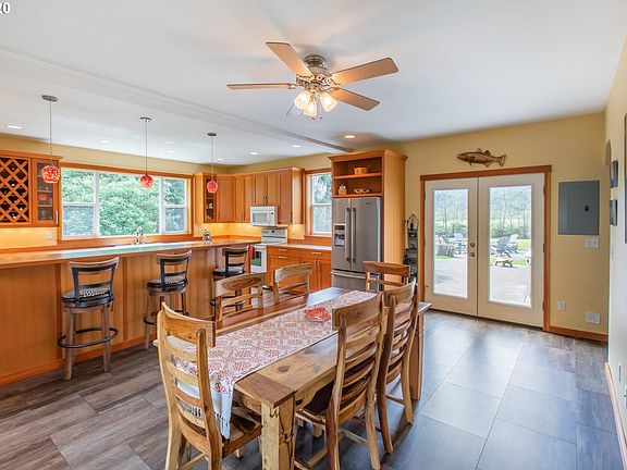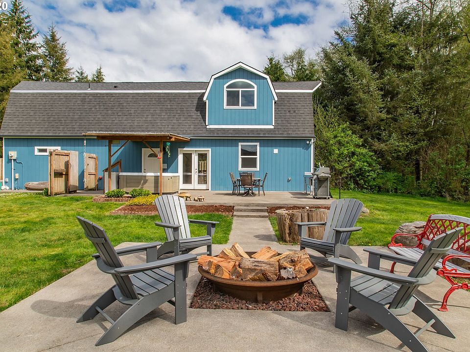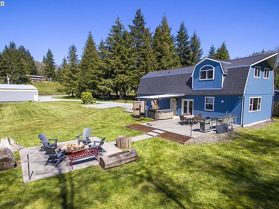8 qualities that make this your must-have paradise: 1)Private 2.70 level acres w/rare Southern exposure 2)3-bay shop w/concrete floors + living space, 3)Cheery, well-maintained 2,053 sf home w/ kitchen/dining rm that offers connection to outdoor patio area. 4)All living possible on main level. 5)Entertain guests at the firepit or soak in the hot tub. 6)No sewer or water bills + efficient woodstove = low $ of living. 7)Near beach, & great fishing on the Nehalem River. 8)Extras-See Features sheet