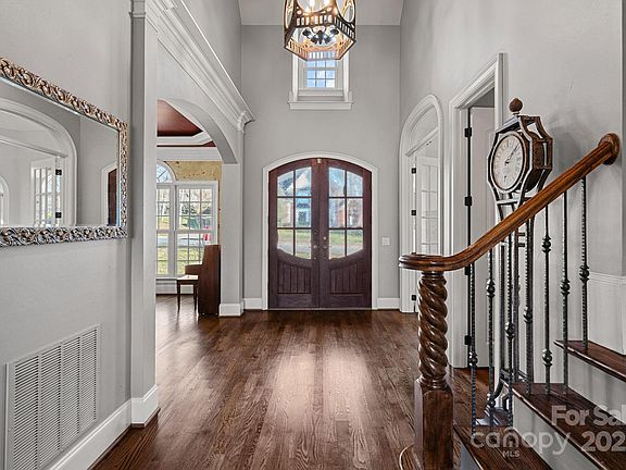 Experience luxury living in this stunning custom home on the 18th tee of River Run Country Club with breathtaking clubhouse and water views. The full brick exterior with stone accents complements the immaculate interior featuring an open floor plan with a vaulted, beamed keeping room and fireplace. The gourmet kitchen boasts custom cabinetry, granite counters, and SS appliances. Highlights include a coffered great room, formal dining with tray ceiling, and a vaulted study, all anchored by a dramatic two-story entry. The main-level primary suite is a spa-like retreat with an oversized tub and dual walk-in closets. Upstairs offers spacious bedrooms with en suite baths and 2nd office. The walk-out basement provides a private living space with a bedroom, bath, full kitchen, and entertainment areas. Outdoor living shines with a screened porch, expansive deck, heated pool, fenced yard, outdoor kitchen, 3-car garage,& 10’ ceilings. An unfinished space to create a theater, wine cellar, or more