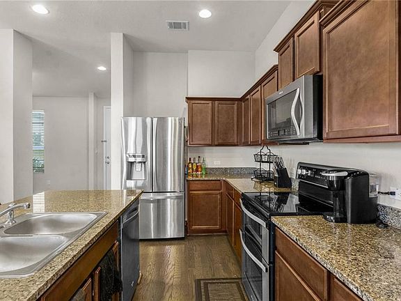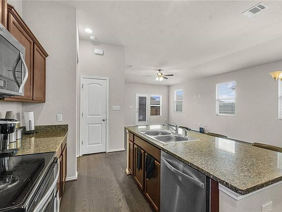 Beautiful 3 bed 2 bath home with over sized office/study, low tax rate, open floor plan concept, spacious family room and dining area, kitchen features granite counters and island with bar stool seating, stainless steel appliances, kitchen open to and overlooks family & dining area, stunning wood flooring, enormous master bedroom and closet, over sized shower, extended back patio perfect for back yard gatherings, unique flexible floor plan, close walking distance to pool