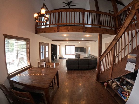 Secondary lot on Williams Lake with beautiful lake views and loft style home. Includes private beach, docks, boat launch, and boat slip. 1,128 sq/ft main floor and 565 sq/ft loft. Primary bedroom, ¾ bath and office space on second floor. Main floor boasts a family, dining, laundry, 2nd bedroom, kitchen and hot tub room. 24X36 shop w/ independent 200 amp service, fully insulated, and concrete floor. Large patio off of the hot tub room with fire pit. 10X10 storage shed with power and water. 30 AMP RV hook-up. Large fenced yard with 2 apple, 2 pear and one cherry tree.