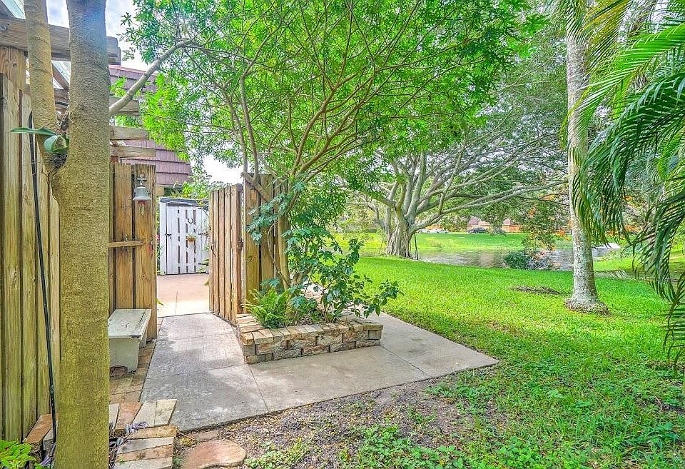 Location and the renovations! Come see this amazing, fully updated courtyard town home. Located in the far SW corner of the subdivision, where it's private and secluded with a view of the lake, green space & no foot traffic! This 3 bedroom home has been so well cared for and maintained, all you need to do is pack your things and move in! This home features a gorgeous kitchen overlooking a spacious family room with outstanding lighting features and sconces. Both the family room and the 1st floor bedroom/den look out to the privately fenced patio, large enough for entertaining your family and friends. Upstairs you will find the other 2 spacious bedrooms and 2 full baths. All have been updated, both have balconies with views of the back of the property. TheMaster suite.... is HUGE! Spacious and comfortable.The master boasts 2 large closets and remodeled shower. This home also has the features you want in your new home.. Mansards roof in 2007, resurfaced patio with paver trim, newer fence, a/c in 2018, freshly painted inside and out, accordion hurricane shutters, water heater 2021, large capacity Kenmore washer/dryer in 2020, newer appliances, renovated bathrooms, granite counter tops in kitchen, wood cabinets by Mr. Kitchen, beautiful wood laminate flooring throughout, all new matching interior doors and hardware, new sconces, lighting, valances, baseboards, lots of storage space and DOG FRIENDLY! Close to everything including the beach, restaurants, shopping and airport. Don't miss this opportunity!