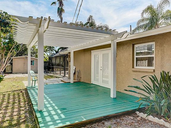 Spectacular location near Anna Maria/Bradenton Beaches! Open great room floor plan with lots of light and space. Breakfast open to living area with breakfast bar and kitchen nook area and french doors out to side patio. If you love to entertain and must have a pool and spa for this amazing price, you found it! A third bedroom could be easily added to this 2 bedroom 2 bath home if needed, two rooms were connected to make huge master bedroom. Over-sized fenced yard with beautiful tropical foliage & mature trees plus two large storage sheds for all of your toys and equipment.