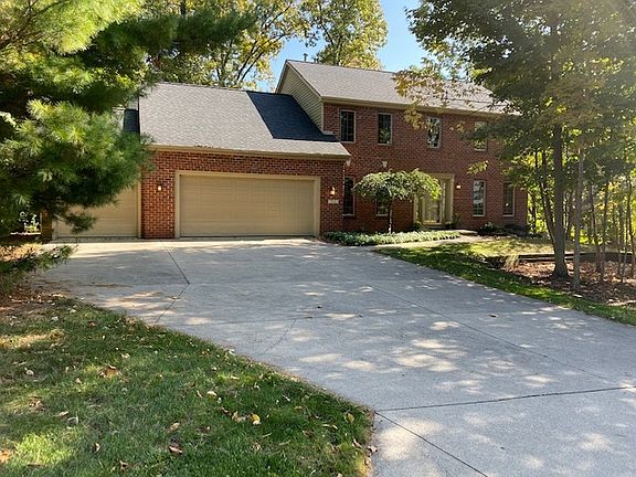 Beautiful brick front two story with 3 car garage and finished basement on a wooded lot. 4 bedrooms and over 3,400 finished square feet.Crown molding, new quartz counter tops with drop in sink, newer stainless steel appliances all stay, new water heater. Lovely and large kitchen with white cabinets, big pantry,kitchen is open to the breakfast nook and family room and right off the formal dining room that is accented with wainscoting. First floor office or play room has french door.. The main level has beautiful hard wood oak floors. 4 big bedrooms upstairs. 20 X 12 master suite has trey ceiling, large walk in closet and room for a sitting area, attached bath has jetted tub, double sinks, separate shower with pocket door. Downstairs is perfect for a game room, movie room, or work out area. Home has loads of closets and many of storage options. Nice deck and private backyard.Within walking distance of the association pool. Enjoy some fishing for bass, blue gill and catfish on the stocked lakes.Laundry room with ceramic tile,folding table, and laundry chute. New washer and dryer. Range/oven and dryer are electric but also have gas hook ups..All this and the location is fantastic! Close to shopping, hospitals, restaurants, walking trails, interstate 69, fire station,YMCA, and churches. Big family or just like a lot of room, this is your house. Monthly utility averages are: Gas $63. Electric $120 water,sewer, and trash $94. Possession at closing.