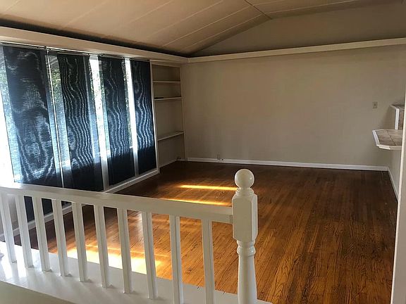 Sunny, spacious top floor 2 bedroom,1 bath apartment in a well-kept, retro-cool duplex. Fantastic central Berkeley location, tucked into a sweet tree-lined street just one block from University Avenue and 4 blocks from the Berkeley Campus. Stellar central Berkeley location. Quick, easy access to nearly anywhere you'd like to go: the Sunday farmer's market, Cal Campus, Trader Joe's, Ohlone park, the Gourmet Ghetto, Berkeley BART, you name it - it's all just a few blocks away! Unit A is the top floor of the rear house on the property. The unit's front door is next to the dedicated carport and leads up a flight of stairs to the main living level. The top of the stairs opens up into a large open concept living area and open kitchen. The entire front wall is floor-to-ceiling windows, filling the space with light. There are warm hardwood floors throughout the unit, and this large living area has lofted ceilings plus original built-in shelving and cabinets. The open kitchen has a lofted skylight and bar seating that separates it from the living area. There is a gas stove, full-sized fridge, double sink, and plenty of cabinet and counter space for cooking a nice meal with friends. The bedrooms are opposite the living area on the other side of the entry stairs. The entrance to the first, smaller, bedroom is at the top of the stairs. It has hardwood floors and a sunny window overlooking the treetops. The 2nd bedroom is much larger, with a wall of windows matching the living room windows and a built-in bookcase. The 2nd bedroom has a long, narrow walk-in closet with access to the bathroom. The bathroom, with shower over tub and high window for ventilation and natural light, is also accessible from the hallway between the bedrooms. Owner pays for trash. Tenants are responsible for PGE, water, and the internet. Sorry, no pets allowed. Available now. Showing by appointment only. Please call or email to set up a time and give us some information about you!