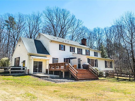 .LOCATION!LOCATION!LOCATION! This beautiful home is located in extreme eastern Powhatan on 10 beautiful wooded acres of land with a bold creek running through the middle! Build your campfire overlooking the water running peacefully over the rocks! Fire pit and bench already there! The home offers all you need to raise your family including 4 bedrooms and a huge recreation room that would be perfect for a family that home schools! There is hardwood throughout the house except in family and morning rooms and baths. The kitchen is bright with granite counter tops and an eat-in area. All appliances convey.There is also a formal dining and living room/office. In the family room you have a brick fireplace with gas logs surrounded by bookcases. The master is very spacious with fan and full bath. Two of the other bedrooms share a jack/jill bath. The rear deck is very large leading to a fenced rear yard perfect for dogs. Detached garage/shed, concrete patio, gutters w/gutter guards. You also have a 100 foot zip line!