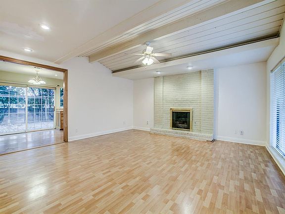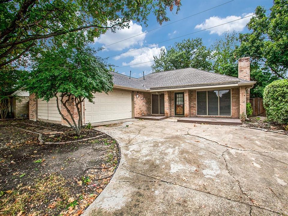 Charming home in Richardson ISD, JJ Pearce HS. Great drive up with LARGE RED OAKS. Close to Canyon Creek Country club. Front deck porches. Open floor plan with lots of light. Great FAMILY RM with WBFP, recessed lighting, ceiling fan and vaulted ceilings. DR is open to FAMILY RM. KIT updates include custom cabinets; flooring and sliding glass door. Large MSTR w_ French doors to backyard. Second bath has updated glass. Wooded backyard yard for entertaining with Gazebo frame and deck. MST bath has separate shower and tub. Large utility with possibility of service door connecting to garage. Two CAR garage with exterior remote. Bring your interior decorating ideas. Foundation work completed with limited warranty.