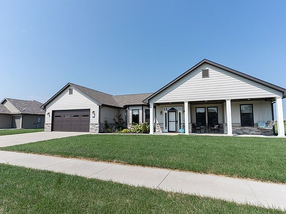 Beautiful Custom custom built SMART home in Rail West! 2 bedrooms have en-suite bathrooms w/the primary having a beautiful walk in shower & a large soaking tub PLUS a built in gun safe in the closet. 2 more bedrooms & a bonus room that can be used as an office, BR or playroom. Beautiful wide crown molding throughout the house. The open living, dining & kitchen have a vaulted ceiling perfect for entertaining. Large pantry for storage & the covered patio has a Weber gril & smoker plumbed in to Natural Gas. Decorative fenced back yard and a side garage for your lawn mower! Controlled with Google/Nest - this home has everything you need to make living easy. Included are Lutron light switches, cameras, doorbells, hardwired smoke & CO2 detectors and all outside sockets for your holiday lights.