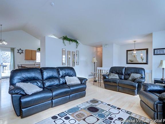 Vaulted ceilings and lots of light come in through these living room windows boasting incredible mountain views. Solid surface kitchen counters. pantry, large master bedroom and upstairs bath. Large fenced yard with raspberries, chokecherry and apple trees. Two back decks. Laminate flooring in main living areas. Conveniently located to shopping and the highway.