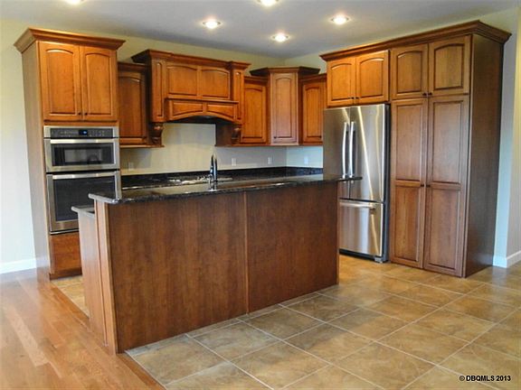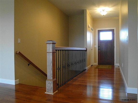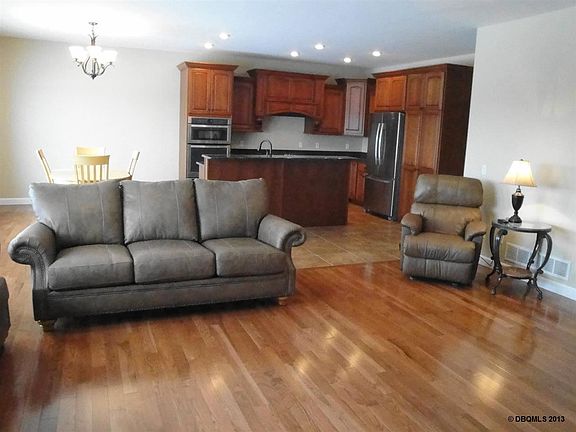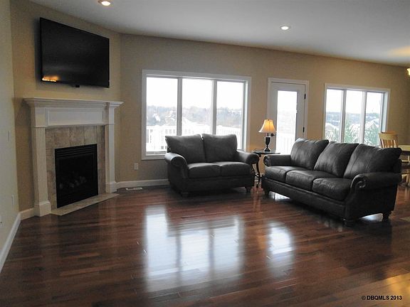Quality built ranch walk-out on southend with open floor plan. Living room offers gas fireplace, hardwood floors. Kitchen offers cherry cabinetry w/granite counters, stainless steel appliances and walk-in pantry. 16x16 deck off dining area. Master bath offers 4' tiled shower & 6' whirlpool tub. All bathrooms feature Birch vanities and granite counters. Lower level is finished with a large family room that offers a gas fireplace, also a 4th bedroom, full bath, large storage room plus rec room/exercise room/office. City of Dubuque utilities. Built by Tim Jaeger Construction.
