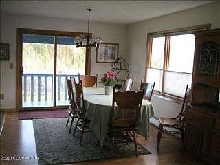 Backing on JBER property with unobstructed views of the Chugach Range. A home to be confident of, it underwent significant energy upgrades recently including new boiler, hot water maker, all windows replaced. Newer roof, too. Much cosmetic work, kitchen has quartz counter with glass tile backsplash, modular sink, pendant lights, new range. Laminate flooring upstairs. Double-size master BR.Master bedroom accesses a bath on the main level that is not shared with other bedrooms. Covered deck off main living area with stairs to the back yard which has a mostly new fence. Large entry with closet. Driveway is extra large for RV or boat storage. Kitchen has pantry. This is much more appealing in every way than your typical split.