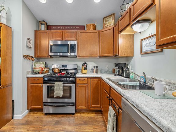 Welcome to this stunning 2-bedroom, 2-bath villa offering low-maintenance living in a peaceful cul-de-sac setting. Built just 10 years ago, this home features an open floor plan with an inviting eat-in kitchen and luxury vinyl plank flooring throughout. Enjoy easy living with snow removal, lawn care, spring and fall clean-up, mulching, and pruning all included—so you can spend more time relaxing on your extra-large patio with gazebo, overlooking the beautifully maintained association grounds. The spacious master suite includes a walk-in shower and large walk-in closet, while the second bedroom is conveniently located near a full bath with a tub/shower combo. A roomy laundry and pantry combination area adds extra storage and convenience. Located in a quiet, sidewalk-lined subdivision perfect for evening strolls, this villa combines comfort, style, and ease of living—inside and out.