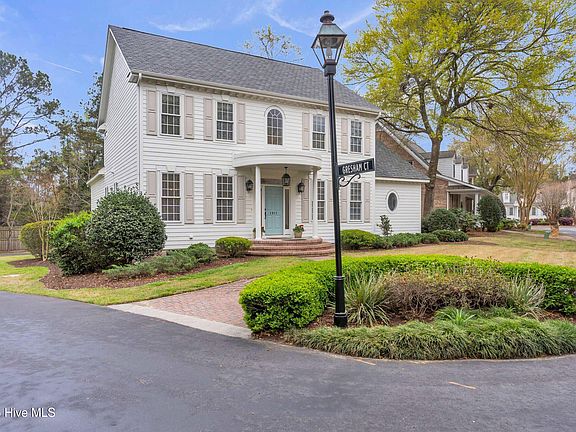 Exquisite traditional southern charm in the gated golf community of Landfall, which is adjacent to the Intracoastal Waterway and minutes to Wrightsville Beach, premier shopping & restaurants. Nestled beside a wooded cul-de-sac and boasting a new 2024 roof and mature landscaping, enter inside this 3,204 SF corner-lot beauty through the requisite Tiffany-blue front door, to your elegant dining room, with chair moulding and gorgeous new lantern-style chandelier. Your grand bright-white kitchen with prep island, double ovens, and stainless appliances, including a brand new French-door fridge with extra drawer, is accompanied by a spacious breakfast room that flows to the living area complete with built-in bookshelves and storage cabinets. Of course, off of the living area, the beautiful screened porch will be your favorite space for leisure and refreshing beverages. The first-floor primary bedroom suite has brand new carpeting, Jacuzzi tub, separate vanities, and seamlessly connects to the laundry room, for easy living. Upstairs features more brand-new carpeting throughout, three large bedrooms with access to two full baths, and an expansive bonus room that can be a fifth bedroom or office. The large two-car rear garage has ample storage space. Neighborhood HOA dues include lawn maintenance! Welcome to Landfall!