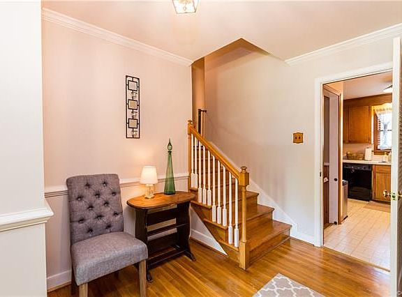 This beautiful home has tons of space inside and out, with a lot of over half an acre! The living room features a generous amount of space, crown and base molding, and hardwood floors. Continuing on the main level, the dining room offers those same wonderful hardwood floors, base, chair, and crown molding, and a chandelier. The kitchen overlooks the dining room through a cut-out and boasts stainless steel appliances, lots of counter and storage space, and an informal eating area. The lower level sports a huge living room with flooring replaced in 2018, a brick fireplace, an unfinished storage space, and a half bathroom. On the upper levels, the master bedroom is spacious and includes a beautifully renovated master bathroom. Three more generously sized bedrooms and a full bathroom finish out the two upper levels. Other notables include a newer HVAC replaced in 2016, front loading washer and dryer(that has steam abilities), back deck, private yard with a detached shed, and a spacious driveway. Sellers offering a one year First American Home Warranty