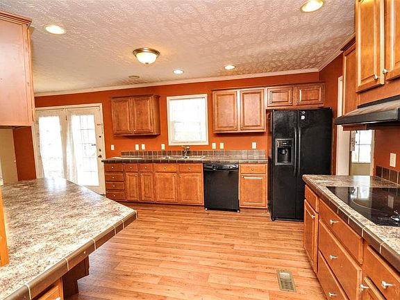 4 bedroom 2 bathroom Clayton doublewide on a permanent foundation with a large lot. This property boasts a split floor plan. The main bedroom has a walk-in closet, linen closet, and the bathroom has a tub, stand-up shower and double sink vanity. There is a living room with a fireplace and a den that opens to the kitchen/dining area. The kitchen has black appliances with lots of cabinets and counter space. You will love the nice size laundry room with pantry. The three bedrooms are all conveniently located close to the spacious second bathroom. An outbuilding, large back deck, and fenced-in yard are included. This property is minutes from I-24 and the Southside of Paducah.