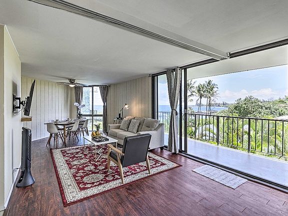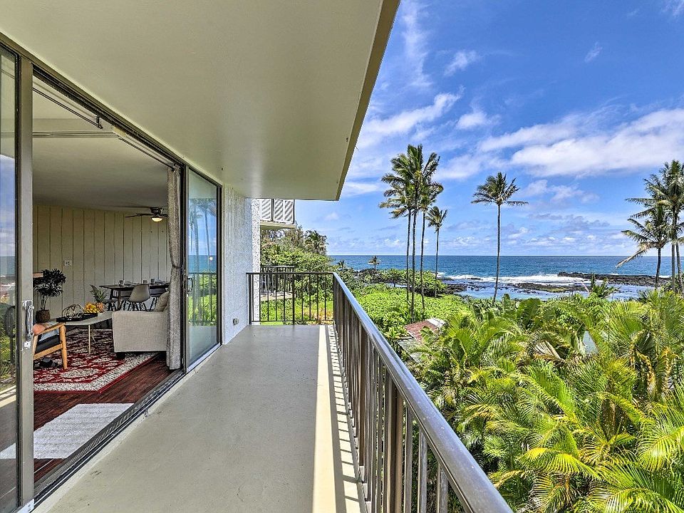 Recently remodeled, large 2 bedroom 2 bath condo with awesome Ocean views and just a short walk to the tide pools and Carlsmith beach park. Look out to the Pacific ocean just below your expansive deck. Your million dollar views from the bedroom, living room, large lanai, and kitchen.